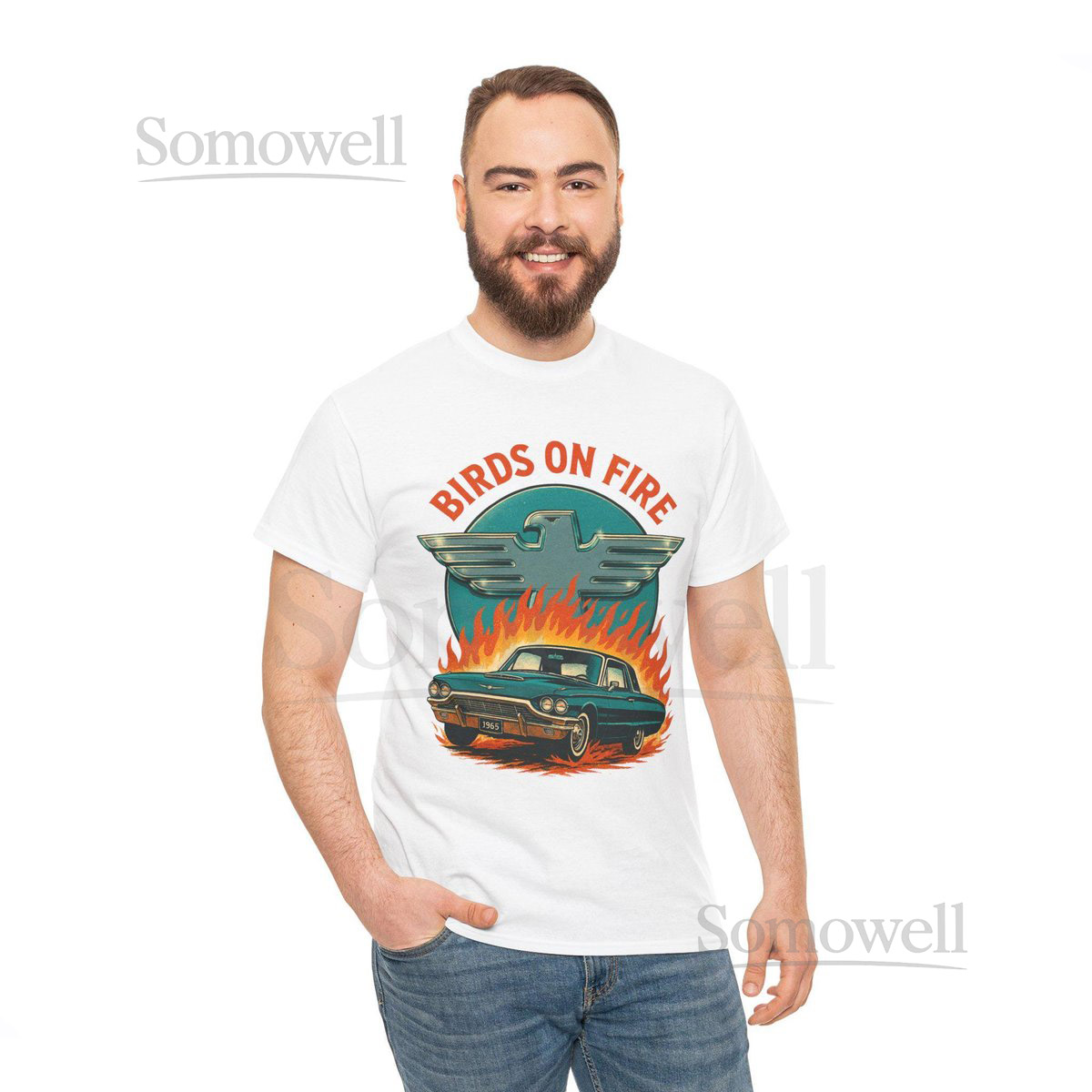 Birds on Fire Muscle Car Tee Flaming Classic Car Graphic_29