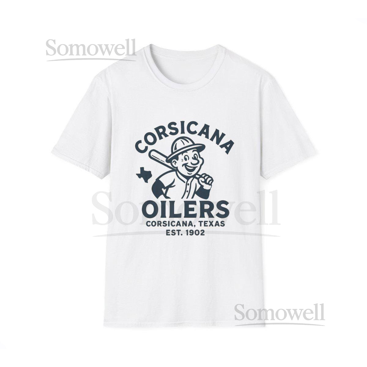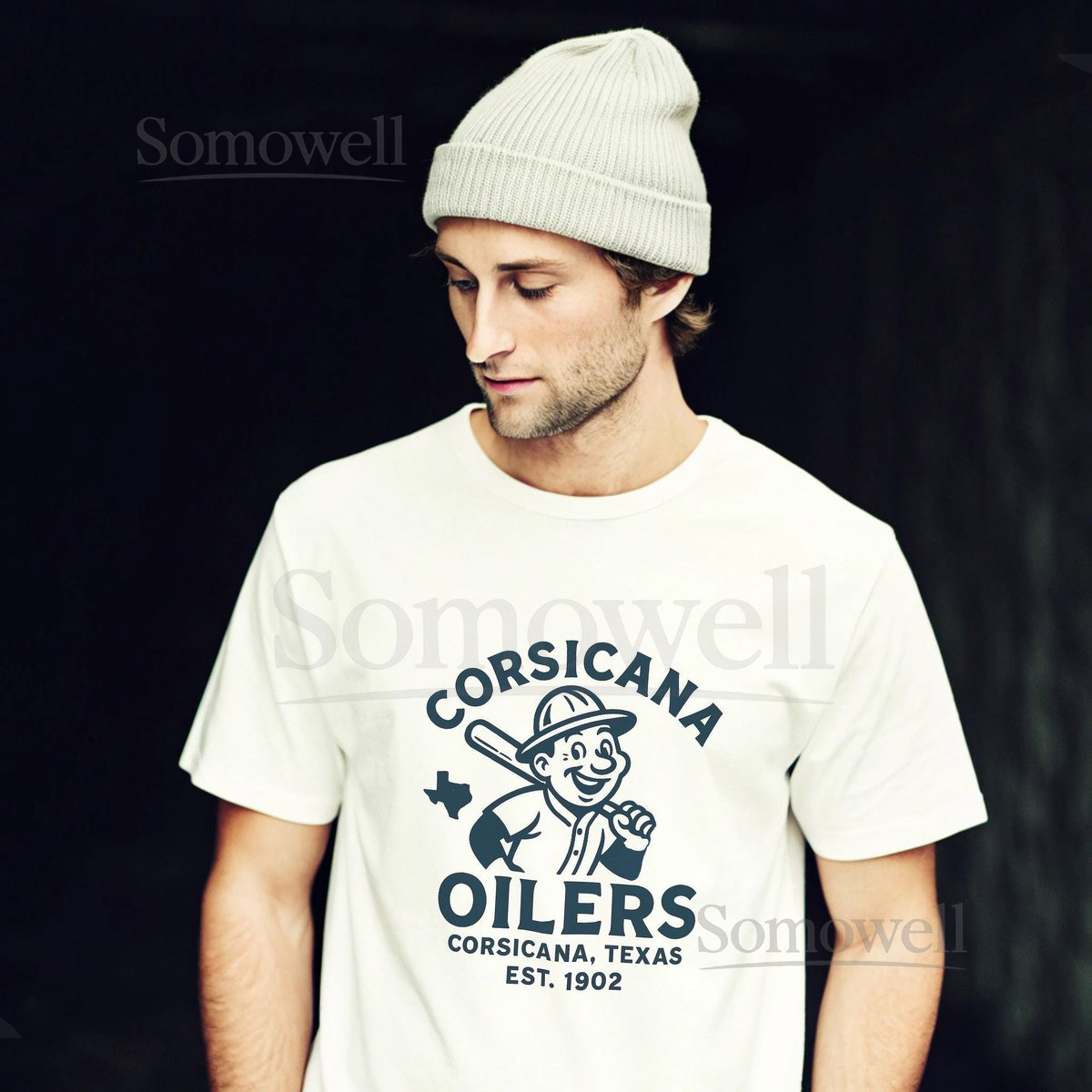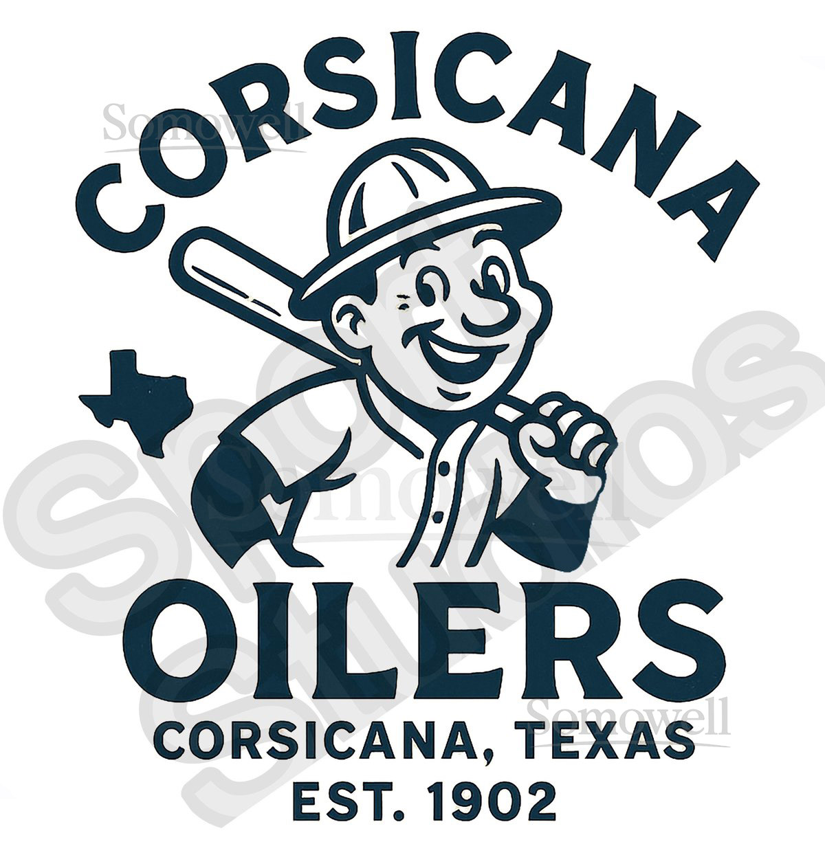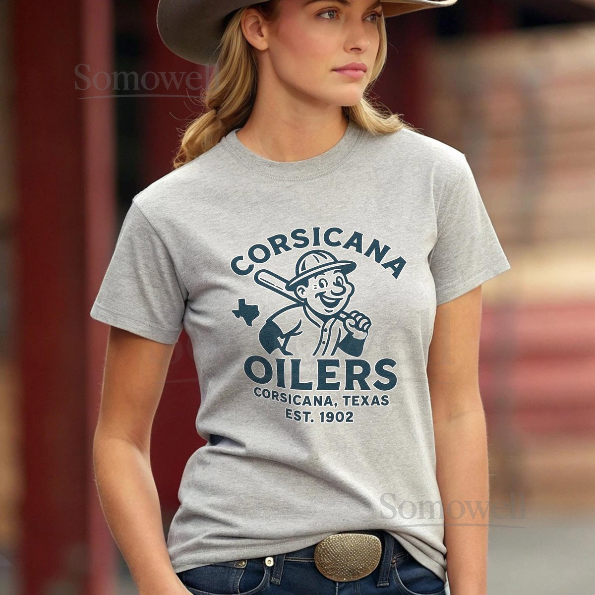 Corsicana Oilers Vintage T Shirt Defunct Minor League Baseball Corsicana Texas Baseball Shirt Oilman Mascot Retro Throwback Blue Tee Classic_111