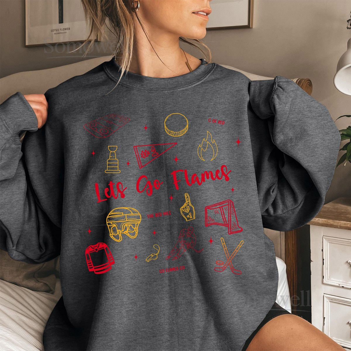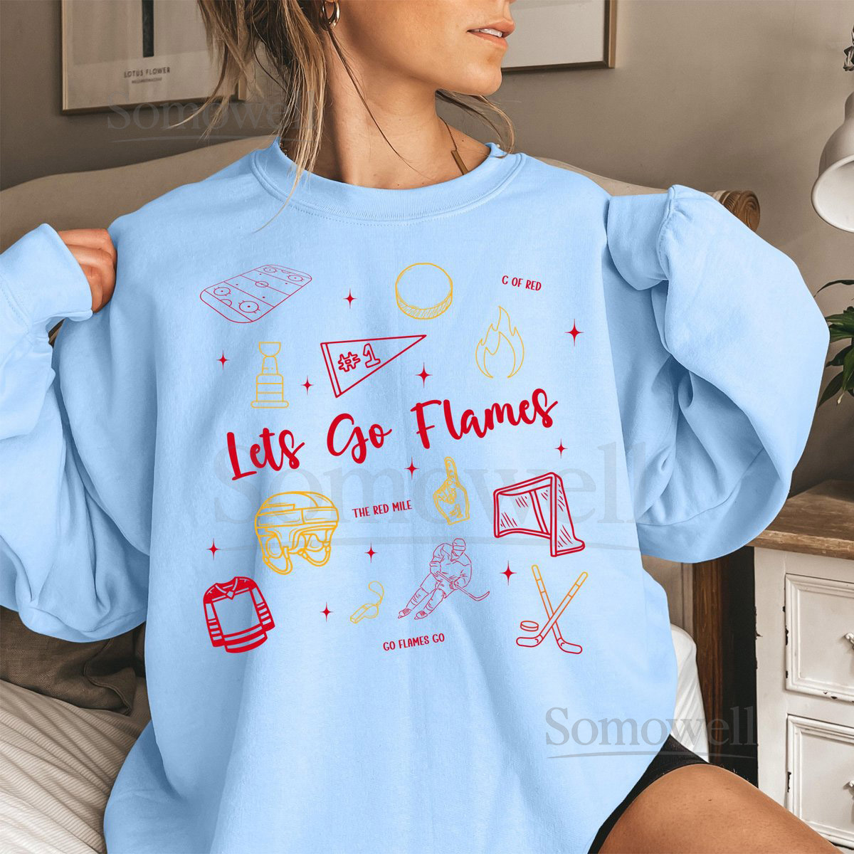 Calgary Hockey Doodle Sweatshirt Calgary Flames Lets Go Flames Shirt NHL Sweatshirt NHL Shirt Flames Sweatshirt Game Day Shirt Stanley Cup_25