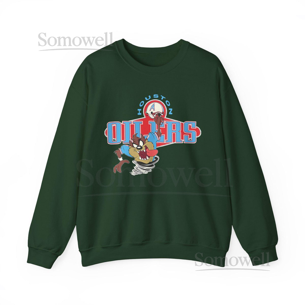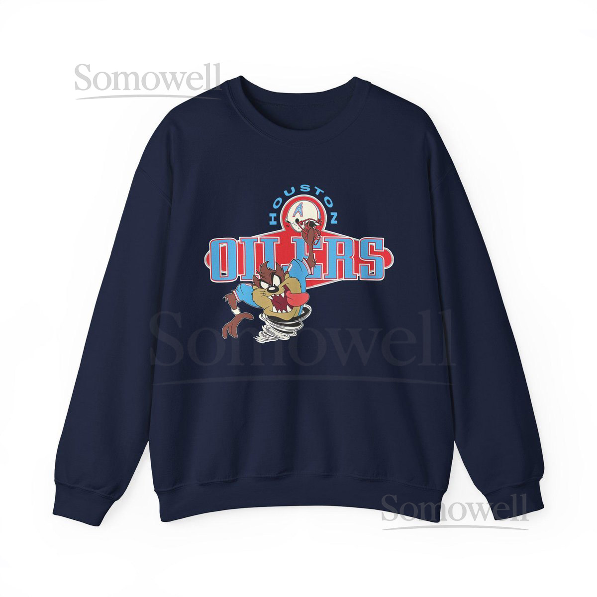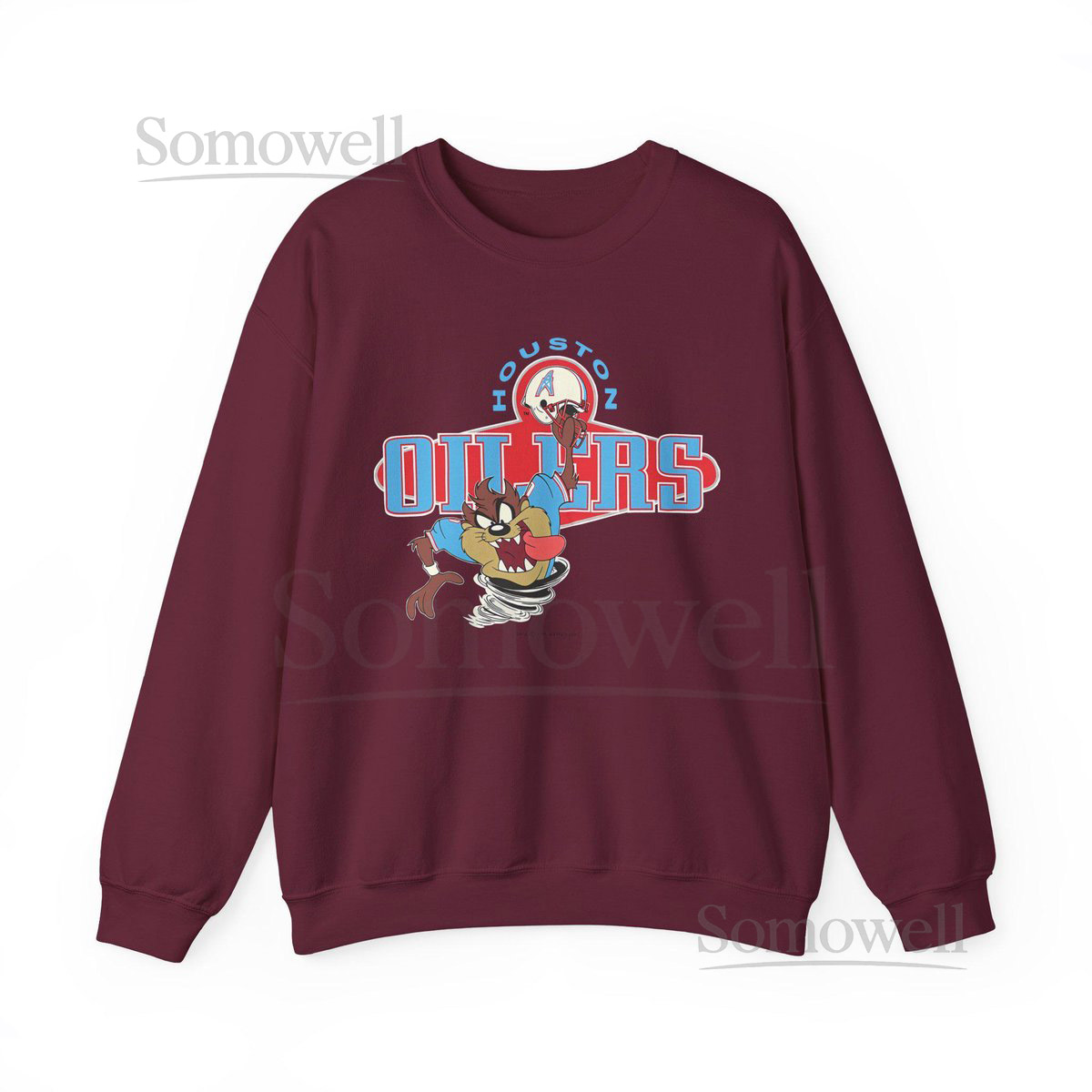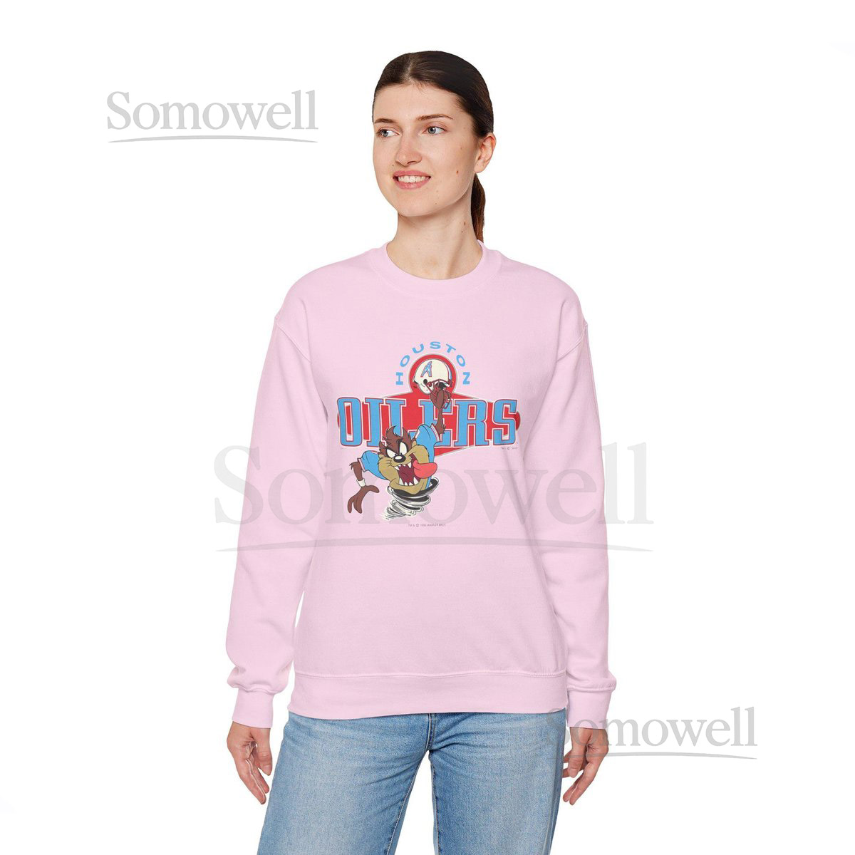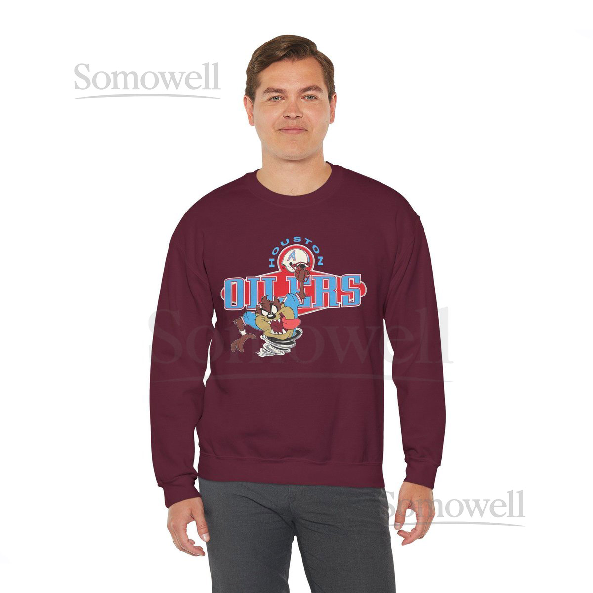 Tasmanian Devil Retro Cartoon Huston Oilers Sweatshirt Unisex Fan Apparel Crewneck Jumper Houston Oilers Sweater Vintage Cartoon_101