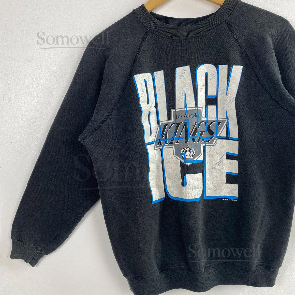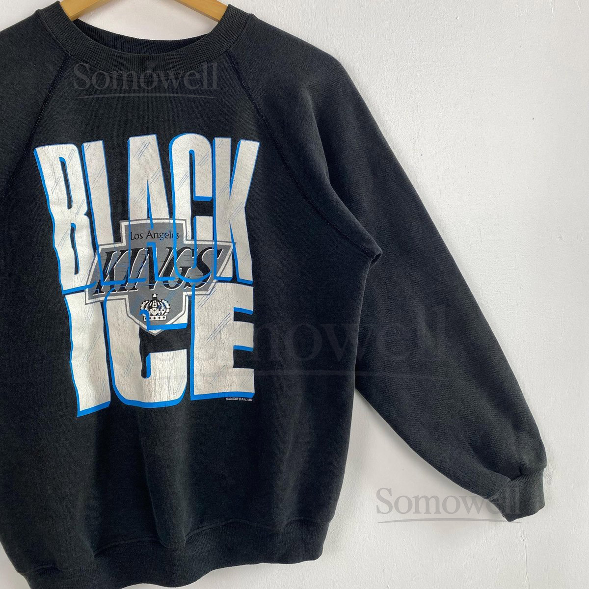 Vintage 80s Los Angeles Kings Crewneck Sweatshirt – NHL – Distressed – Print Logo – Black Color – Mens Fit To M_107